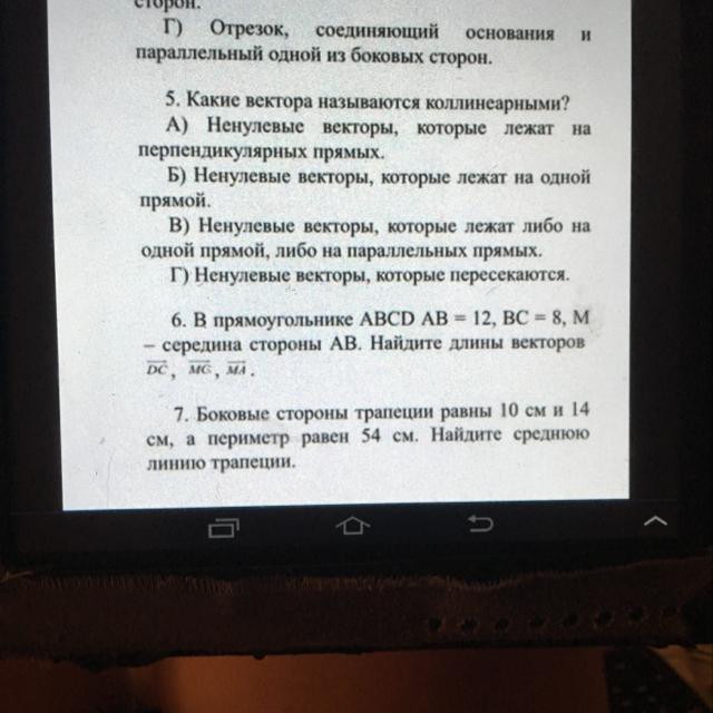 6. Длина DС равна 12, т.к. равные векторы имеют равные длины, а векторы АВ=DС, МС=√(12²+8²)=√(144+64)=√208=4√13; МА=6.