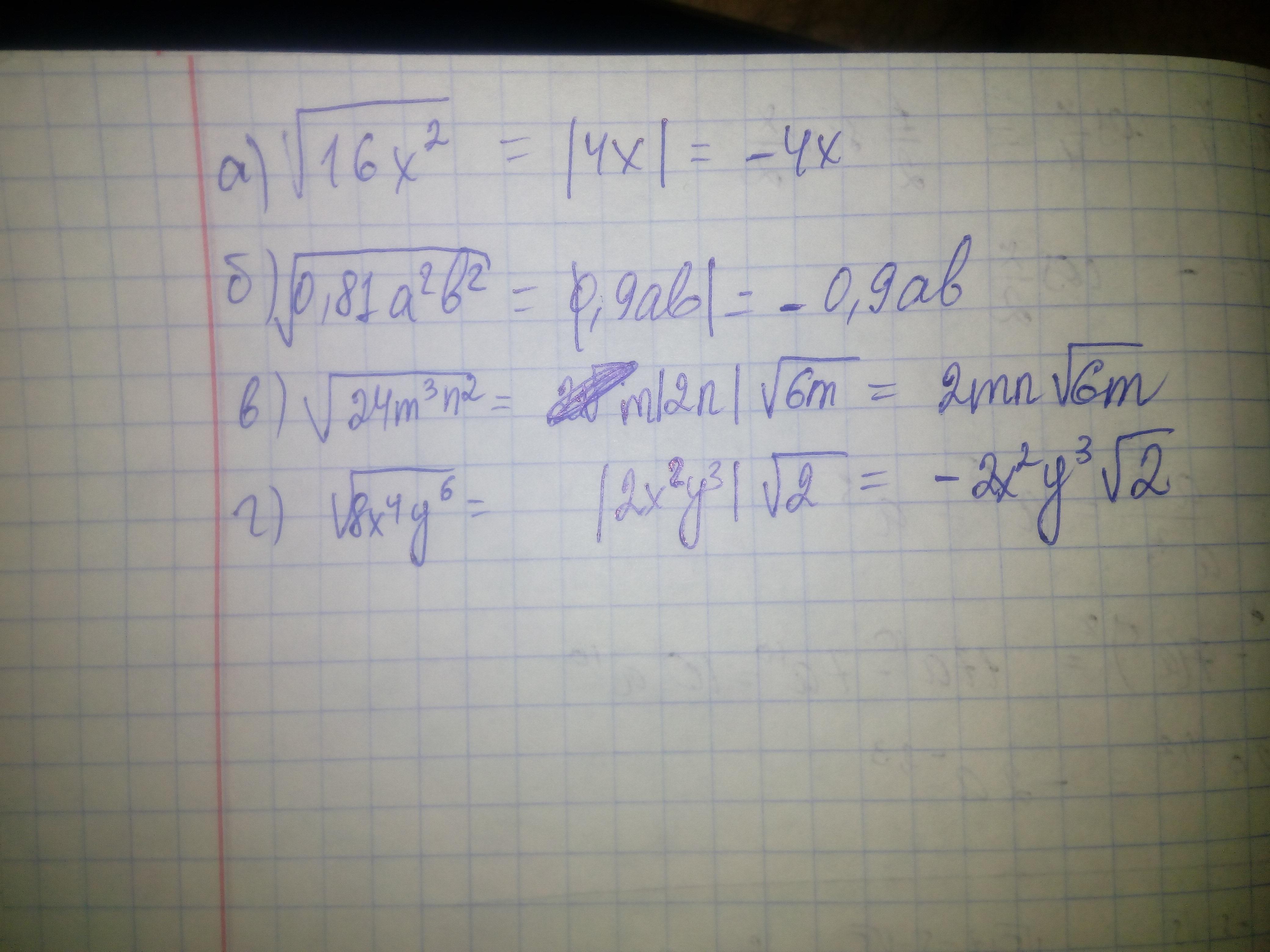 a) 4IxI б) 0,9aIbI в) 2mnV(6m) г ) 2x^2Iy^3IV2 ; V -это корень , I I это модуль