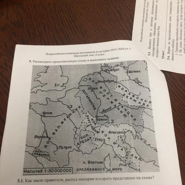 Из предложенного списка выберите имена правителей, между которыми была разделена держава территория которой представлена на данной схеме. 1)карл лысый 2)сиагарий. 3)карл смелый. 4) лотарь. 5)Ярослав мудрый. 6)хлодвиг. . 7)людовик немецкий