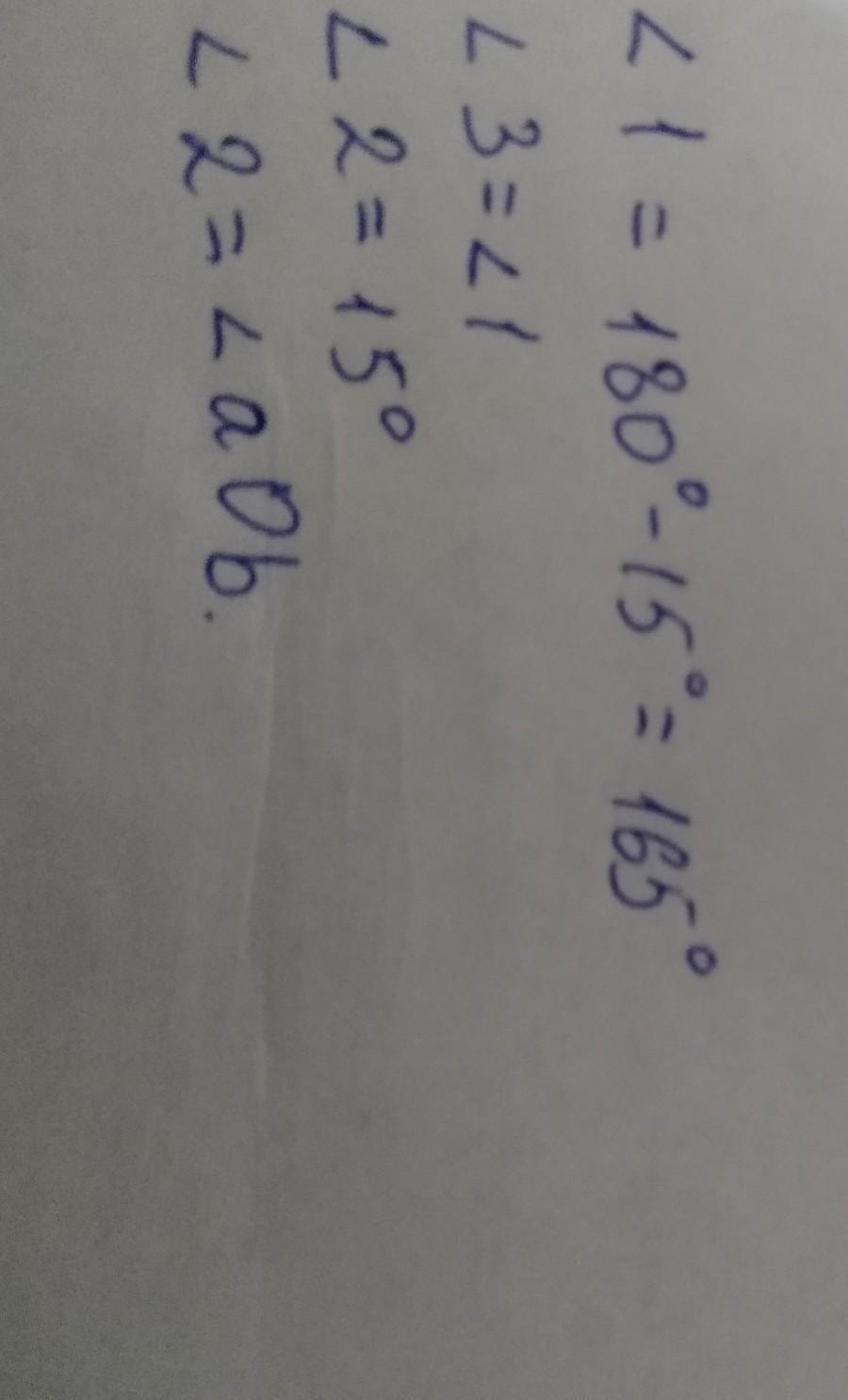 Угол 1 смежный с углом 2 => угол 1=180°-15°=165°
