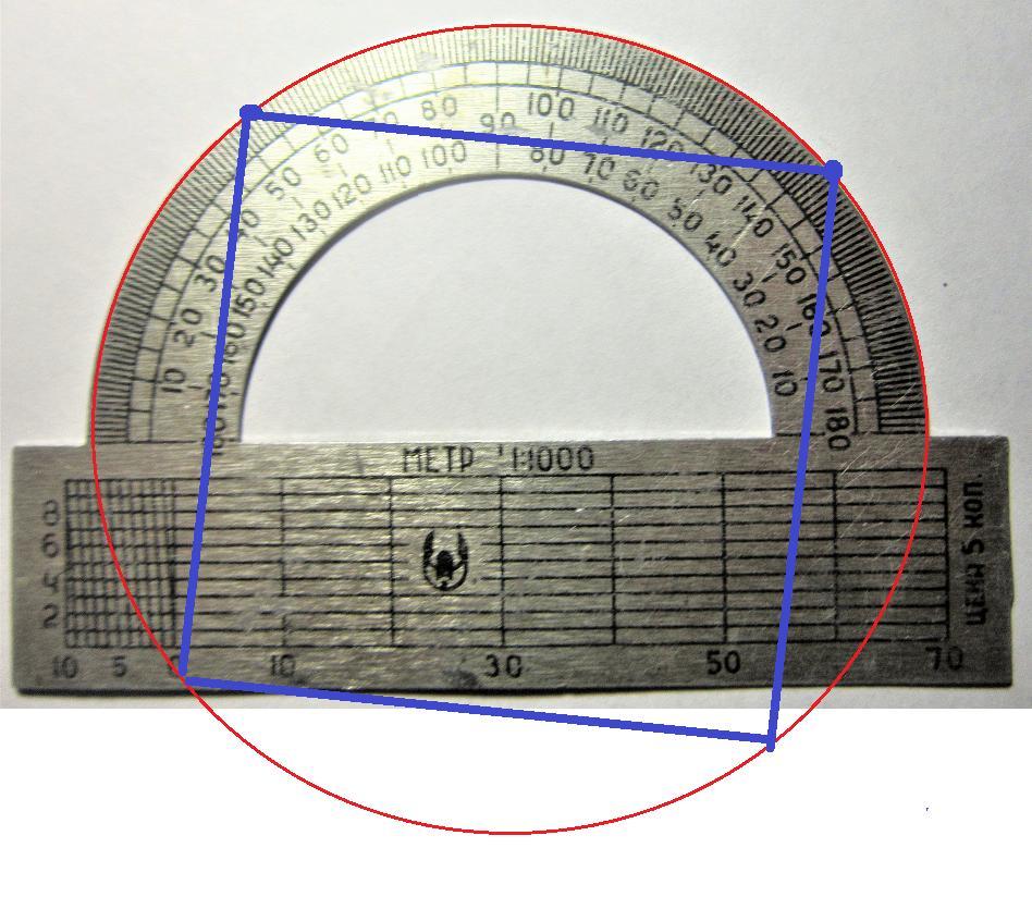 Делаем окружность, используя транспортир и две точки.