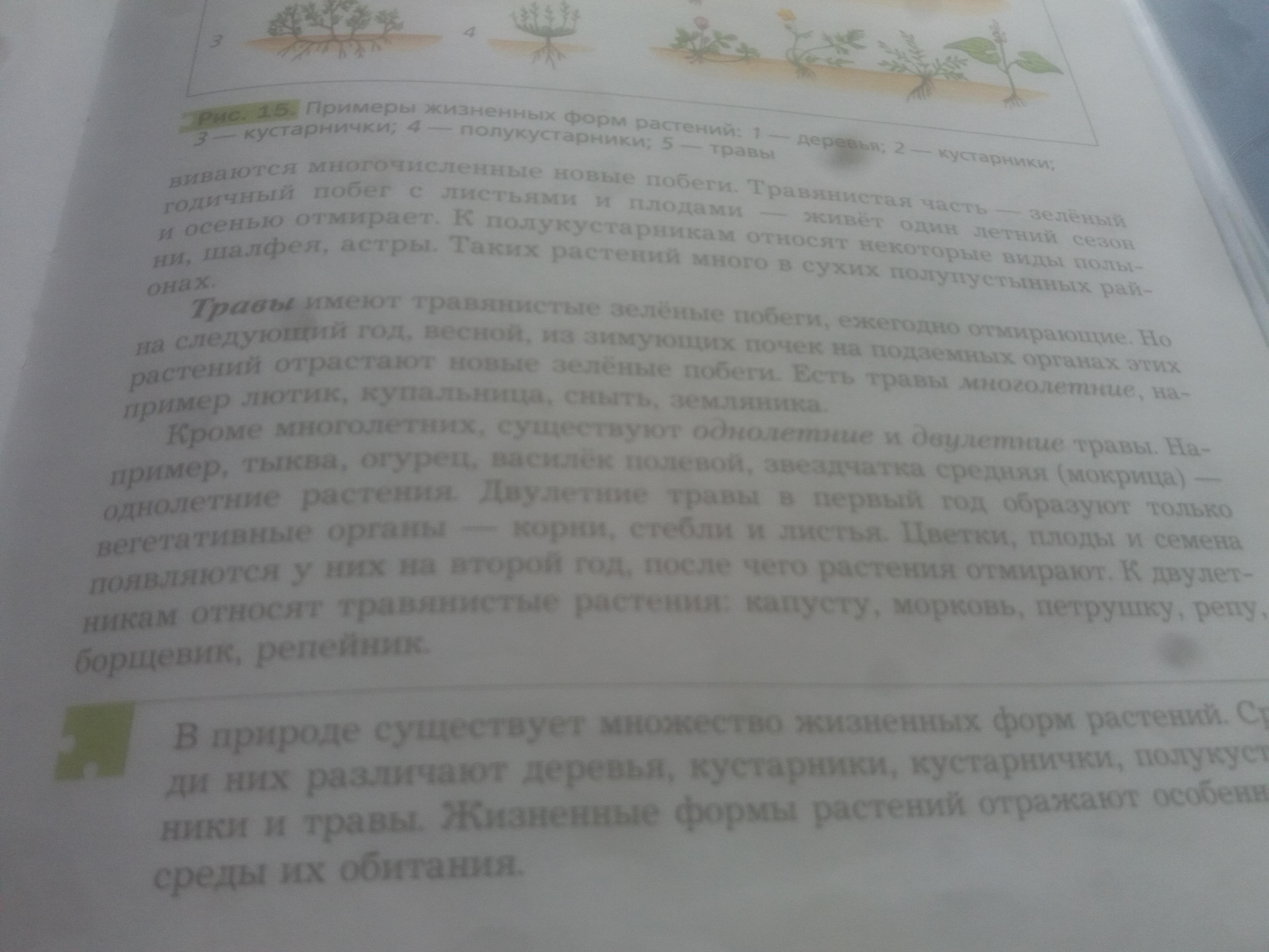 Ответ:примеры жизненных форм растений являются формы любых растений к примеру в учебнике говори ся деревья кустарники травка цветы ель и т. д