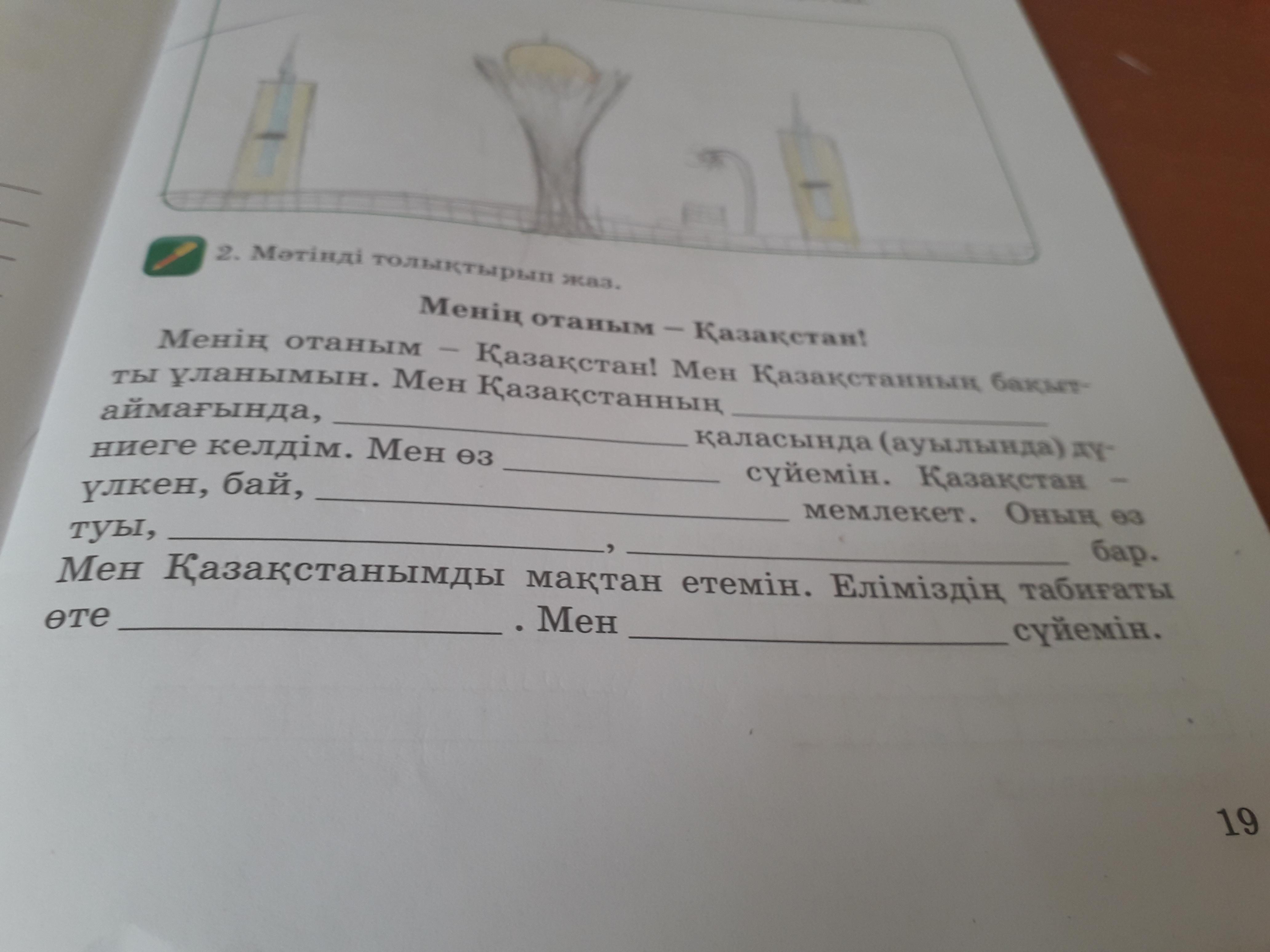 Мен Қазақстанның солтүстік аймағында, қарағанды қаласында дүниеге келдім. Мен өз отанымды сүйемін.Қазақстан үлкен, бай, дамыған мемлекет. Оның өз туы, елтаңбасы, əнұраны, гимні бар. Еліміздің табиғаты өте керемет. Мен Қазақстанды сүйемін.