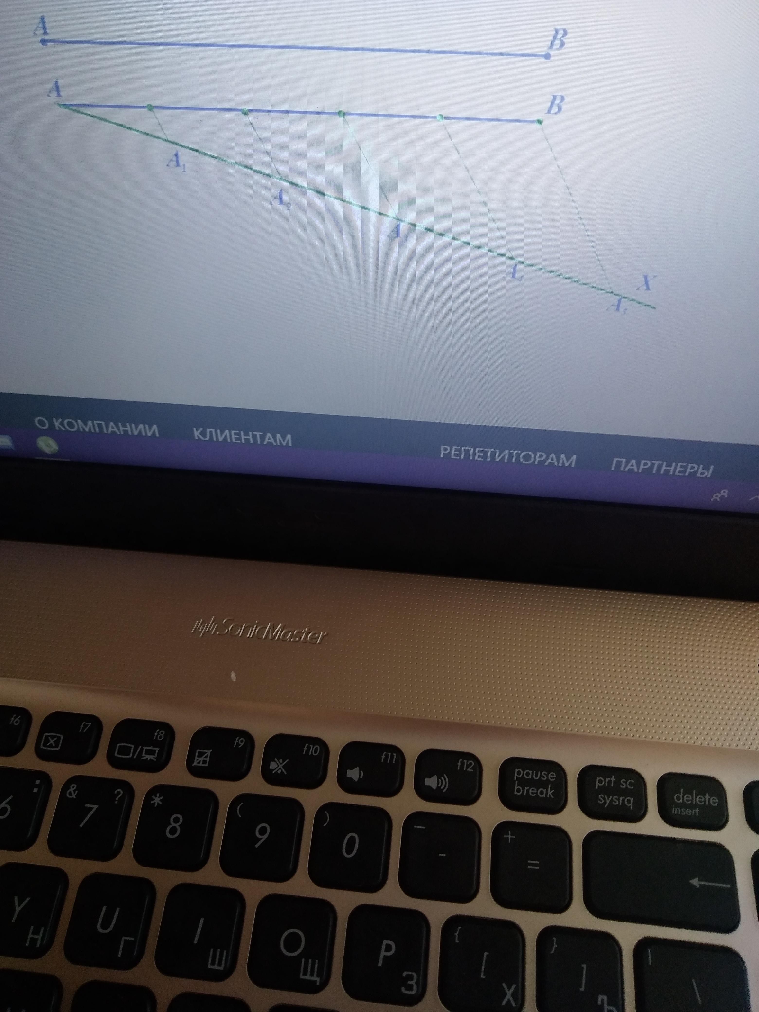 1) Проведем луч АХ, не лежащий на прямой АВ, и на нем от точки А отложим последовательно 5 равных отрезков АА1, А1А2, А2А3, А3А4, А4А5 т. е. столько
