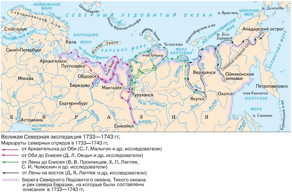 Какие территории изучали участники Великой Северной экспедиции: