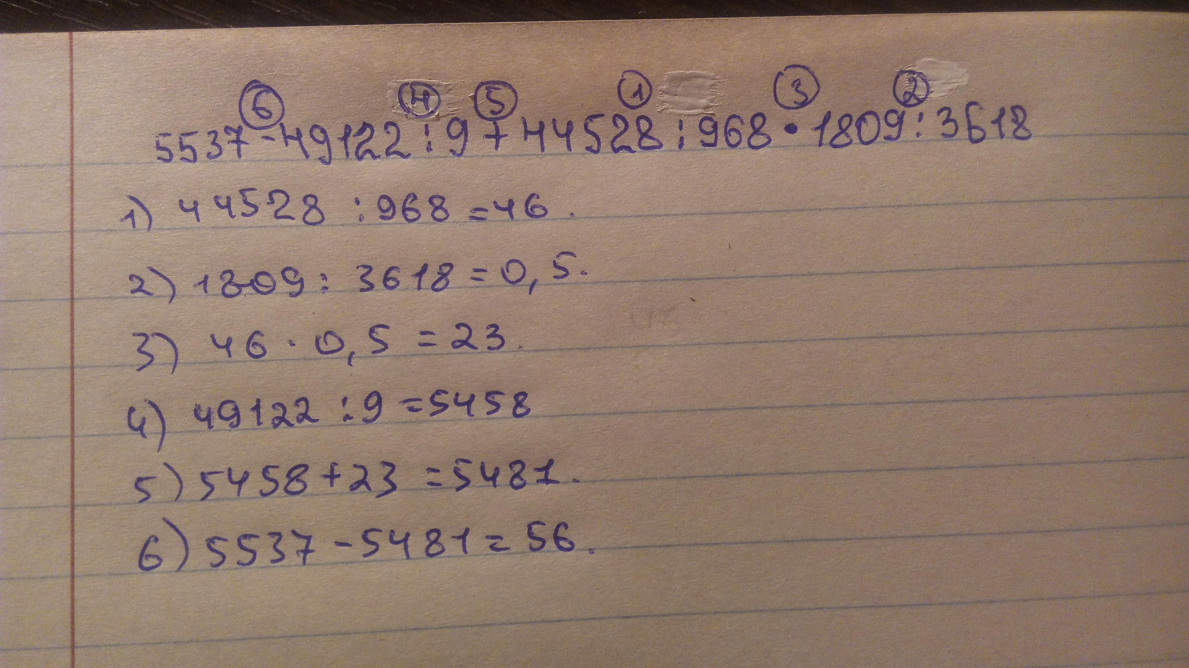 5 537−49 122÷9+44 528÷968×1 809÷3618