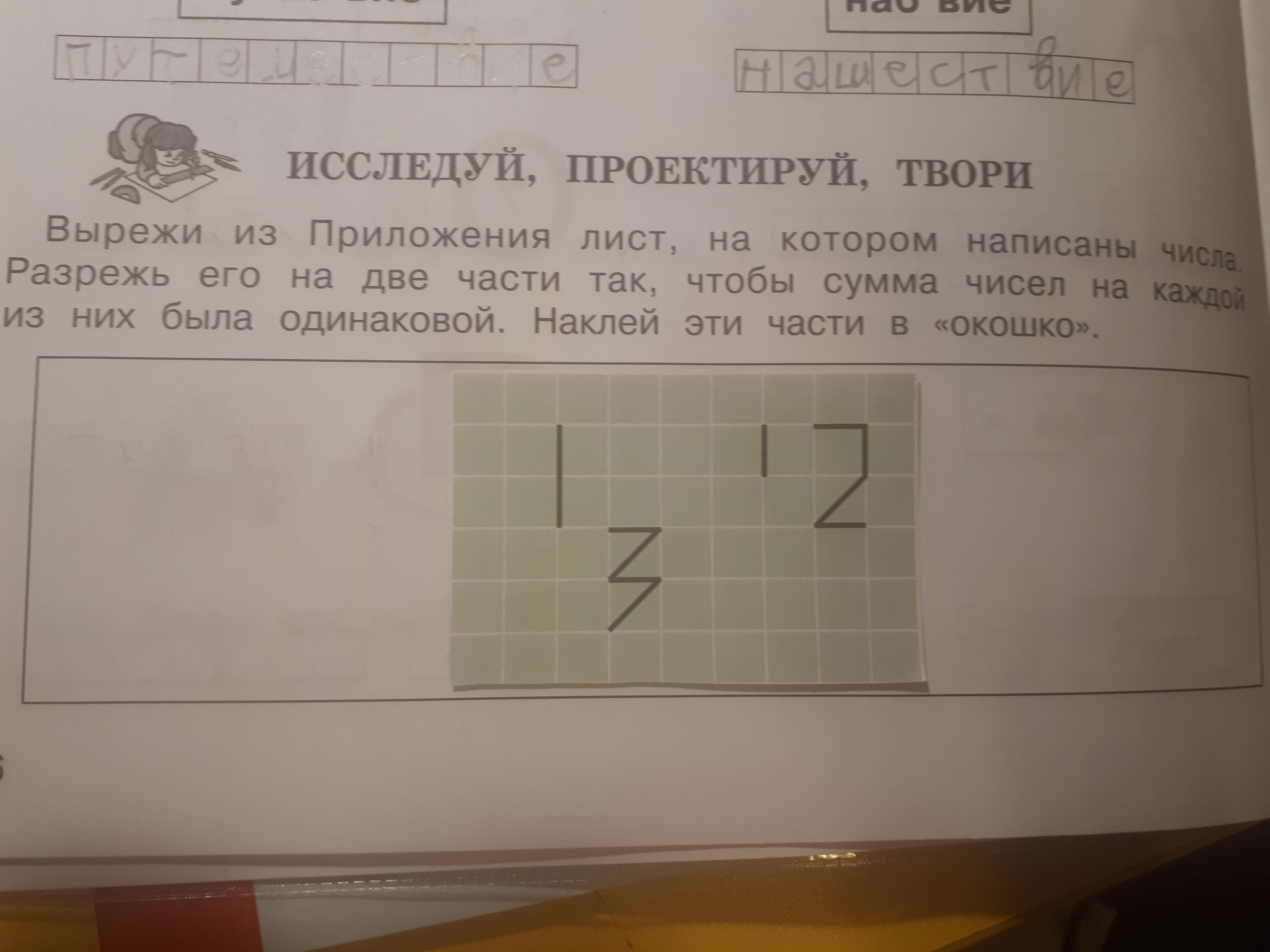 большую палочку разрежь на 2 маленькие. По итогу 2 маленькие и двойку в левое окошко, а маленькую полоску и тройку в правое.