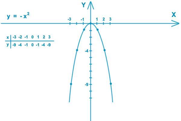 y=x2 - парабола, при положительном значении ветви параболы будут направлены вверх, но, так как y= -x2 ветви параболы будут направлены вниз.