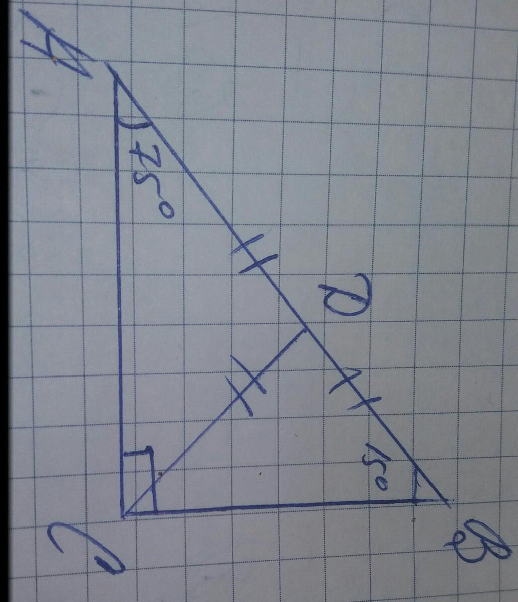 треугольник прямоугольный значит медиана равна половине гипотенузы