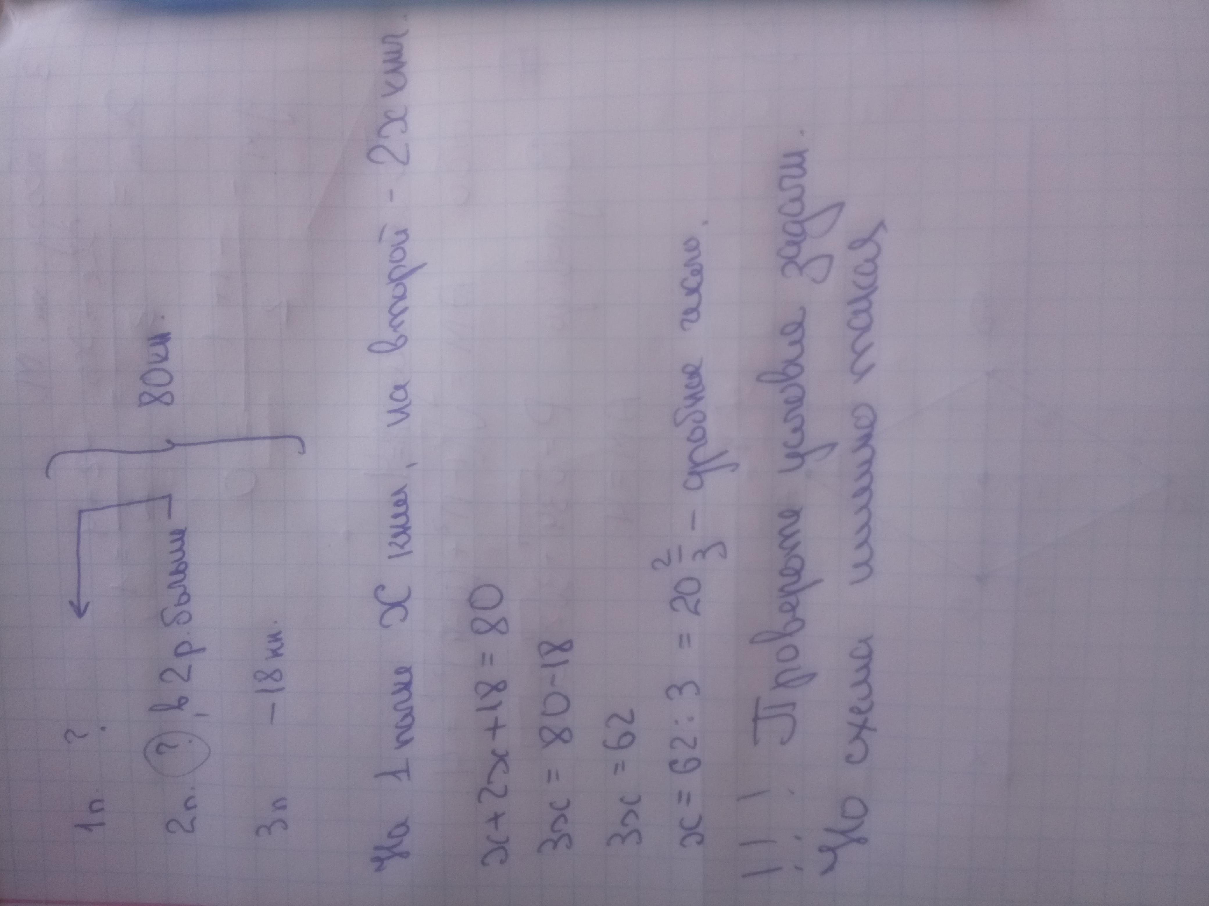На трёх полках находится 80 книг. На второй полке в два раза больше книг, чем на первой, а на третьей - 18. Сколько книг на второй полке?