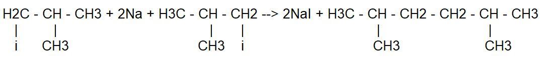 H2(I)C - CH (CH3) - CH3 + 2Na + H3C - CH (CH3) - CH2(I) --> 2NaI +