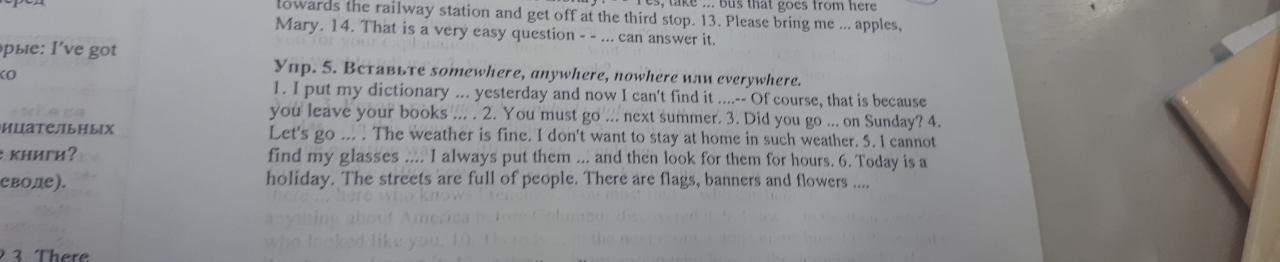 Упр. 5. Вставьте somewhere, anywhere, nowhere или everywhere.
