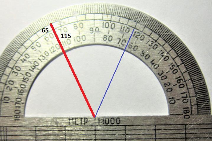 β = α + 50 = 65 + 50 = 115° - большой угол - ответ.