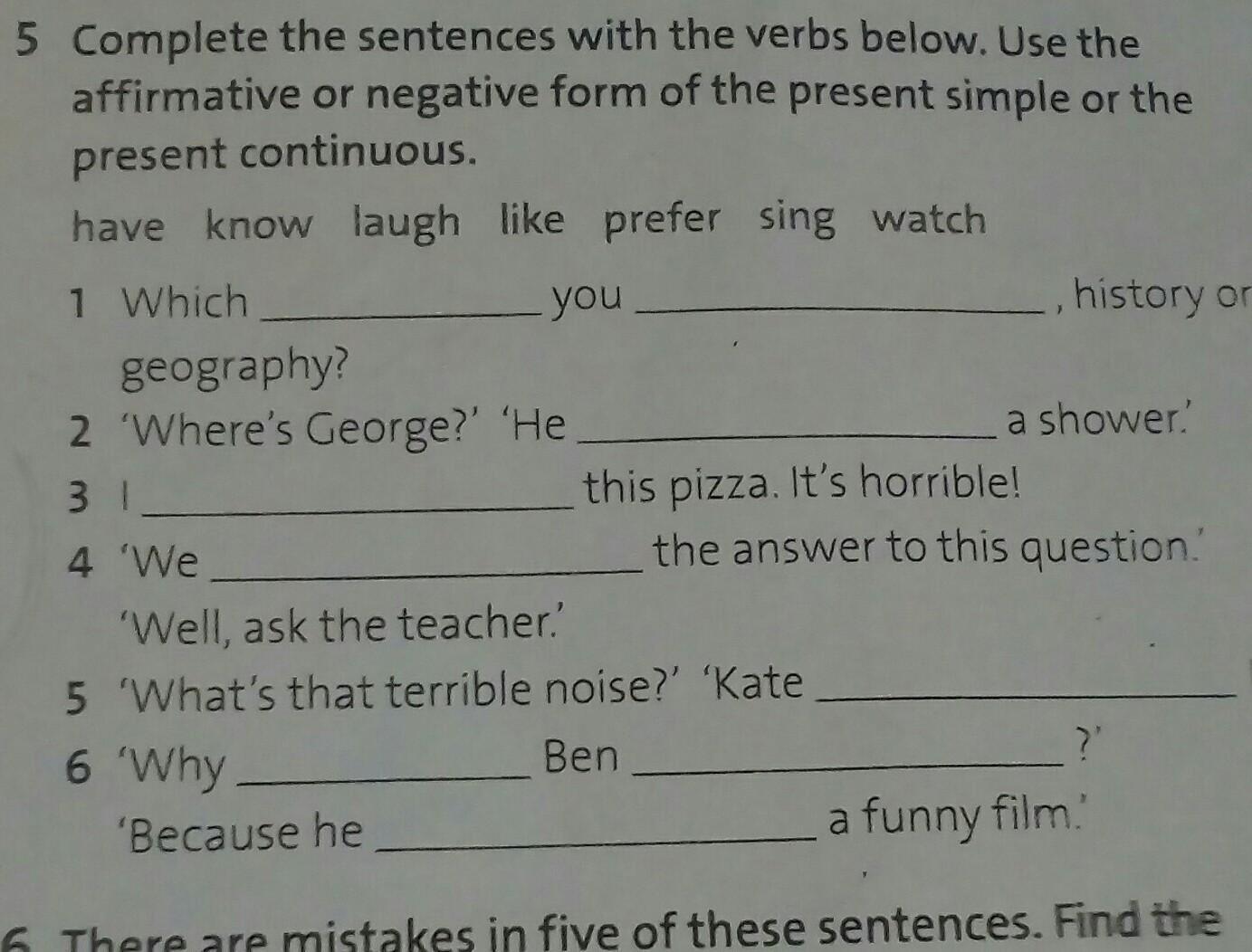 2. ‘Where’s George?’ ‘He is having a shower.’