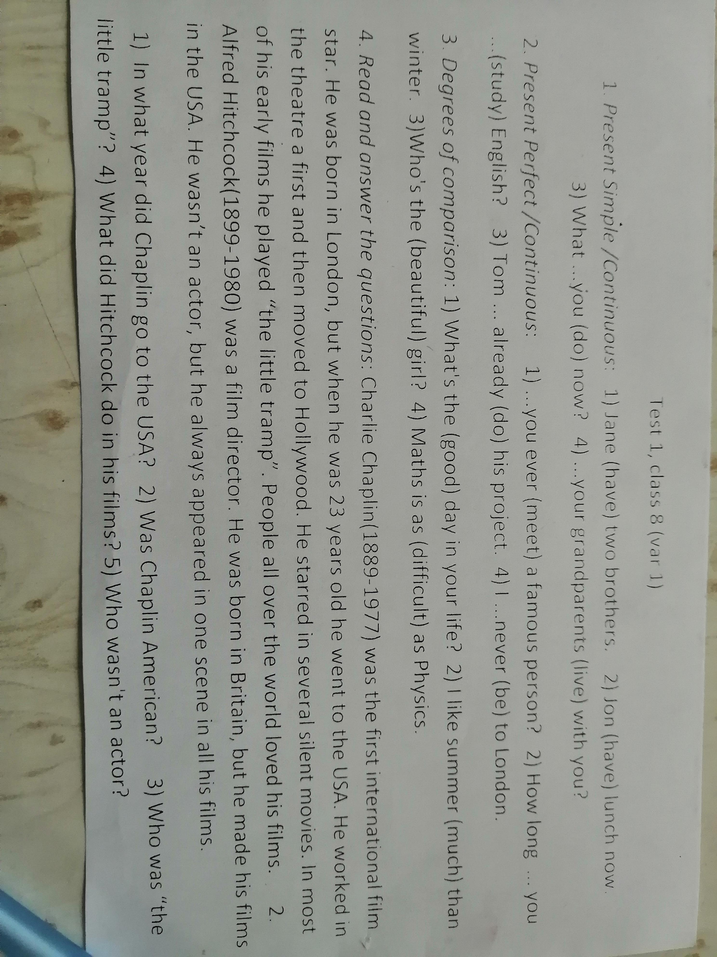 1) 1 (has) 2 (is having) 3 (What are you doing now) 4 (Do your grandparents live with you?)