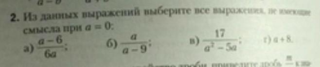 Выражение не имеют смысла, когда знаменатель обращается в 0. Если вместо а подставить 0 в знаменатель и он будет равен 0, тогда выражение не имеет смысла.