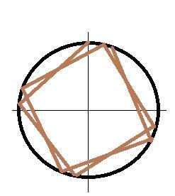 Коло стіни круглої кімнати діаметром 3м на підлозі сидить коник стрибунець. Кожний його стрибок має довжину 2м. Він починає стрибати. В яких точках кімнати він може при цьому опинитися?
