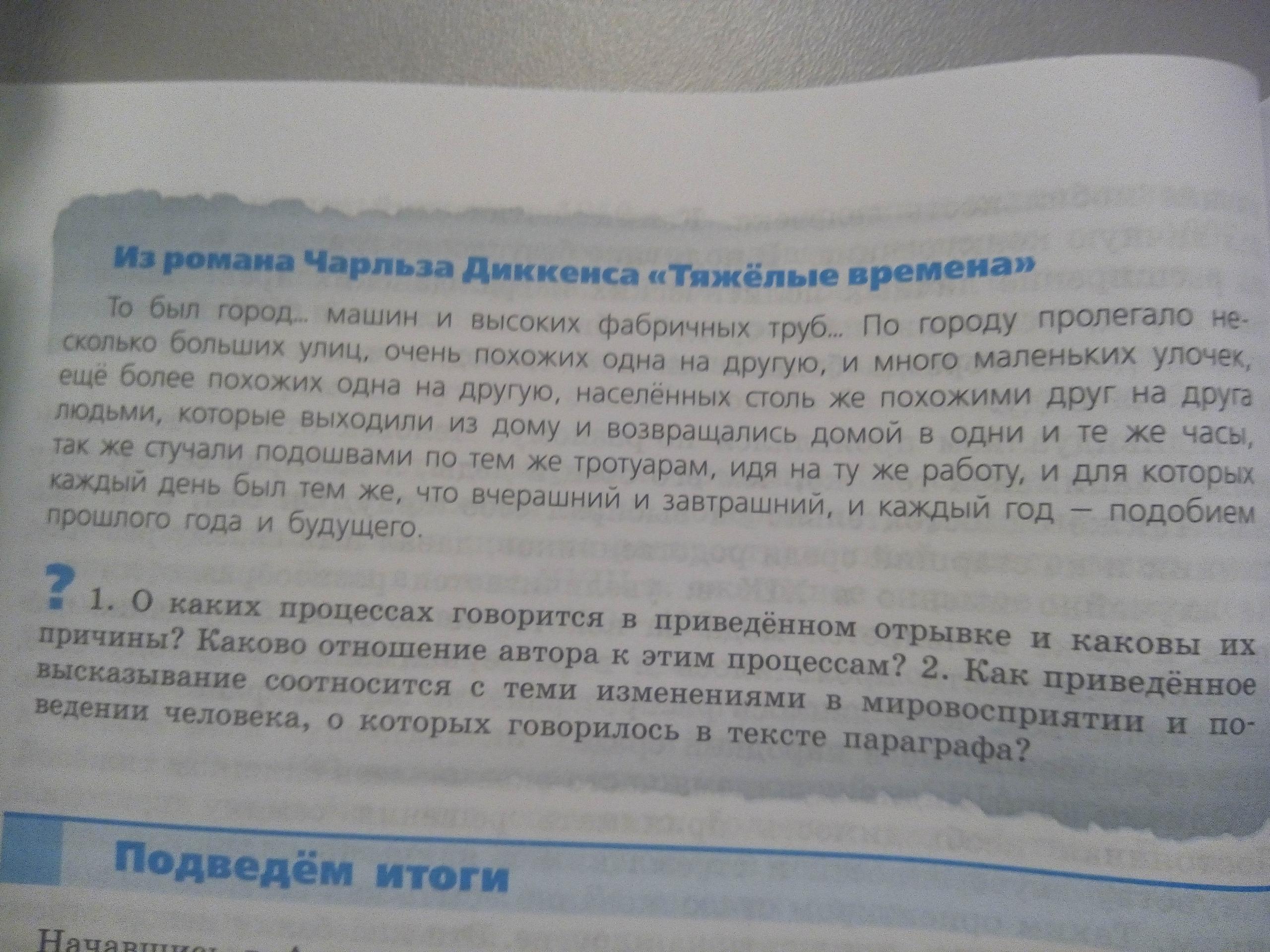 Вопрос из параграфа истории 9 класса "Повседневная жизнь и мировосприятие человека 19 века