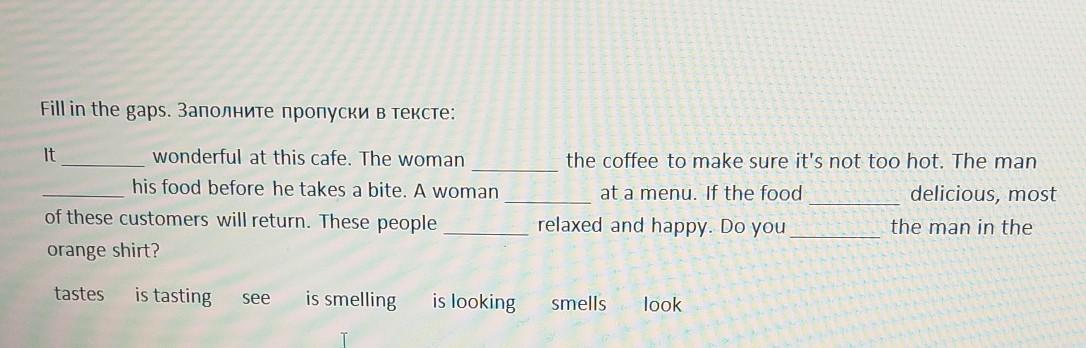 1. smells 2. is tasting 3.smells 4. is looking 5. tastes 6. look 7. see