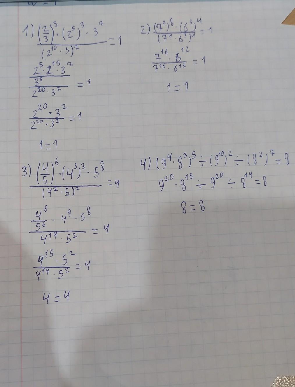 2) (7²)⁸×(6³)⁴÷(7⁴×6³)⁴=1;