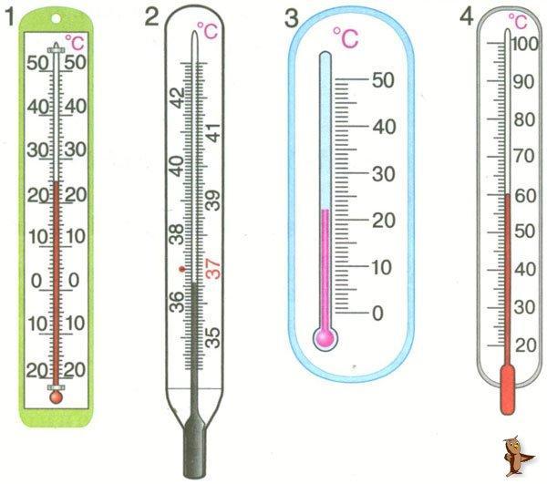 1) Цена деления: 1 °С, объем = 25 °С