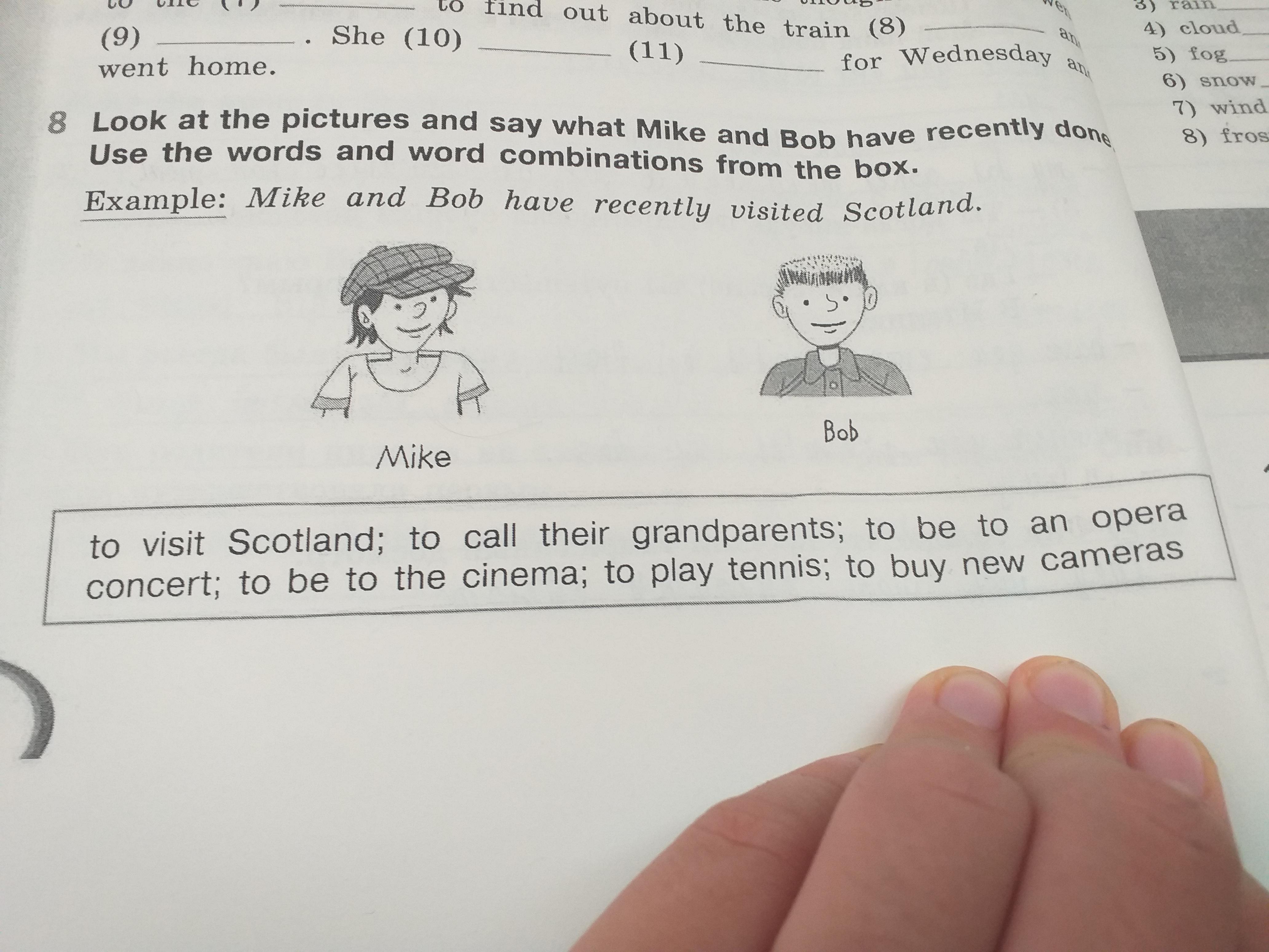 Recently done Look at the pictures and say what Mike and Bob have use the words and word combinations from the box. срочно помогите
