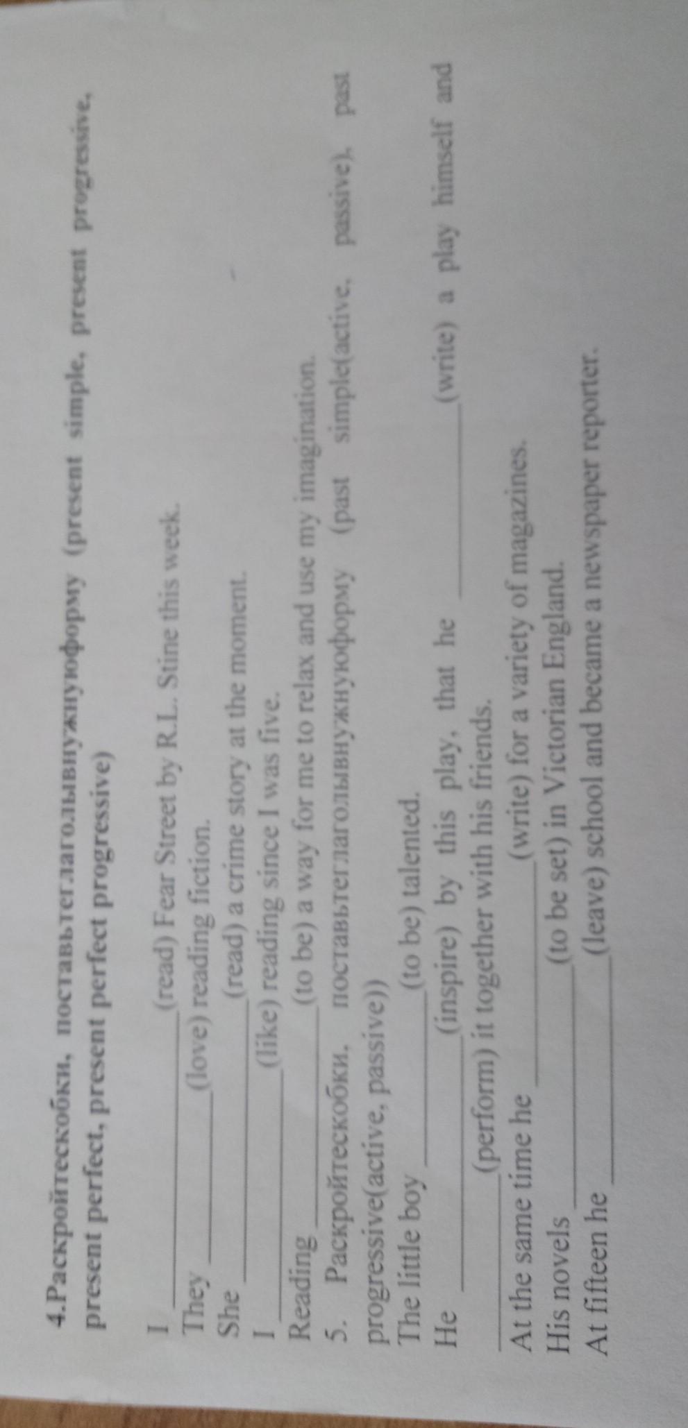 4.Раскройте скобки, поставьте глаголы в нужную форму (present simple, present progressive, present perfect, present perfect progressive)