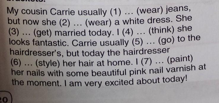 1 wears 2 is wearing 3 is getting 4 think 5 goes 6 is styling 7 am painting