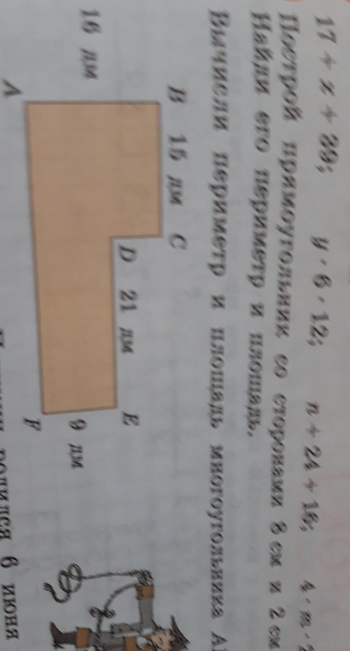 1. Вычисляем сторону CD = AB - EK = 16 - 9 = 7 (дм)