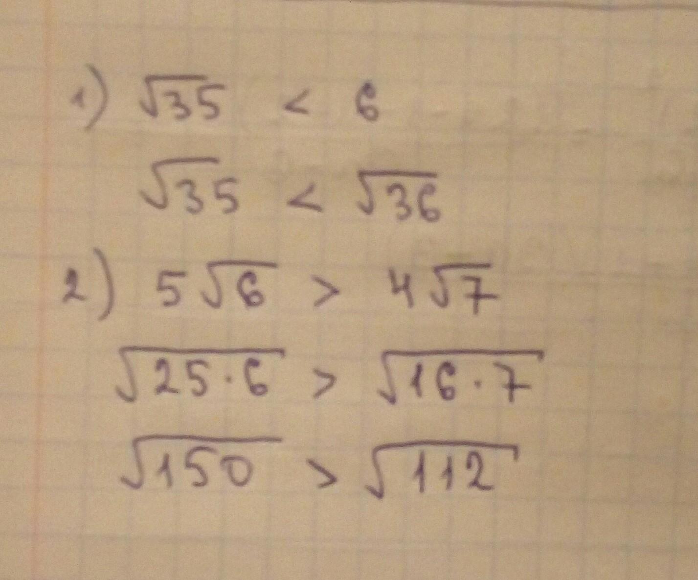 ты е**ан корень 35 равен 7 значит оно больше чем цифра 6