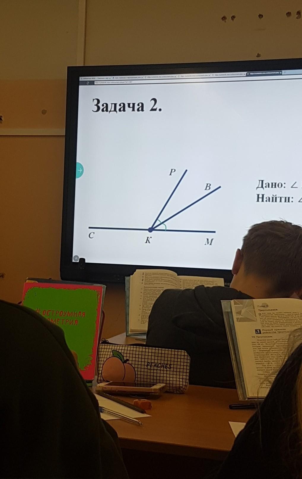 нам дано PKM=40, PKB=BKM=20. CKP=180-40=140. что бы найти CKB надо CKP+PKB=140+20=160
