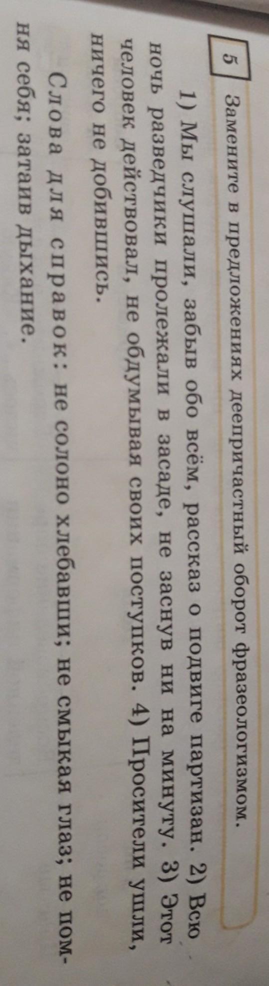 1. Мы слушали, затаив дыхание, рассказ о подвиге партизан.