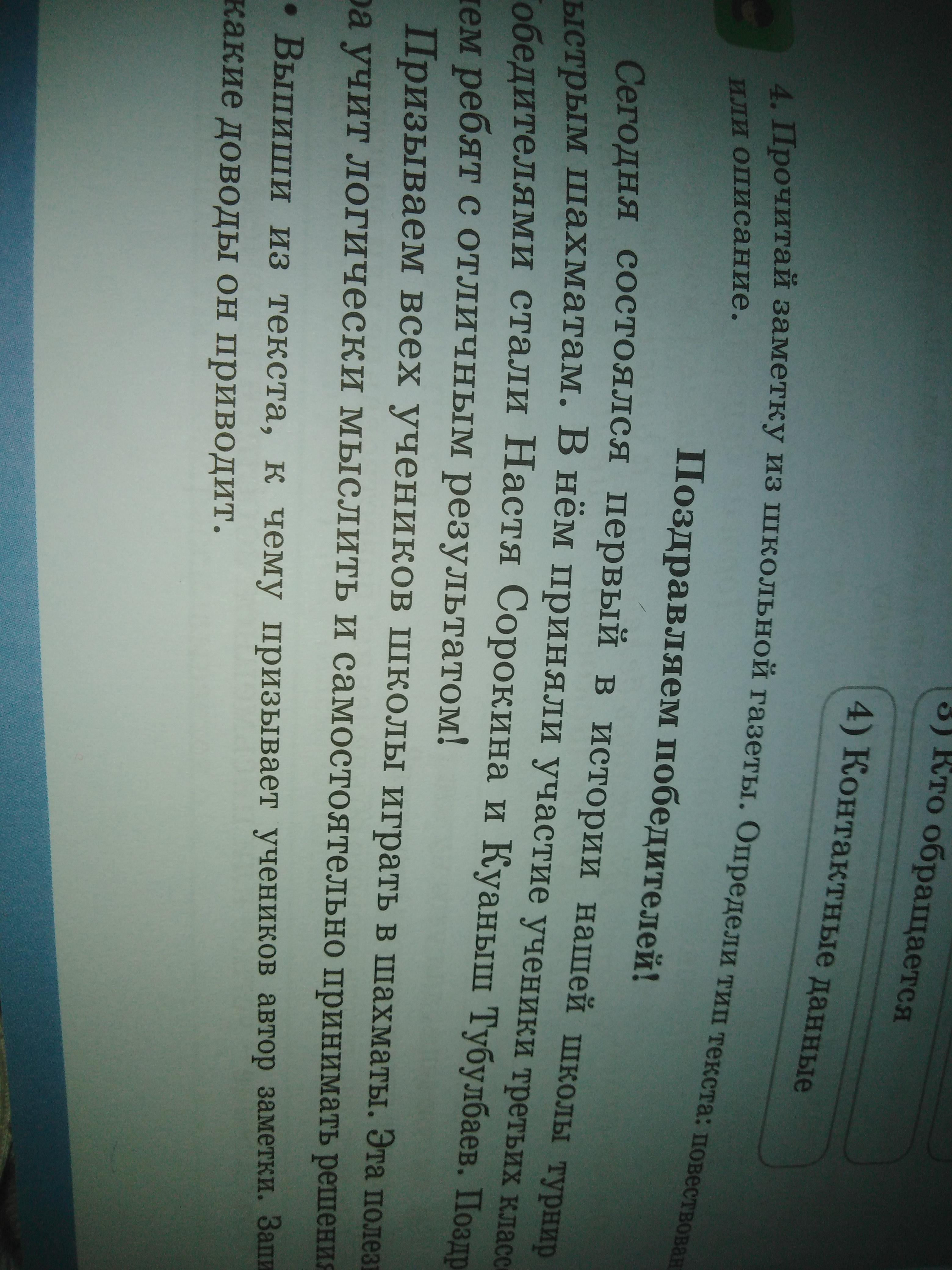 Думаю - повествовательный. Но опять же мои предположения. Автор призывает учеников играть в шахматы. Так как шахматы помогают логически мыслить.