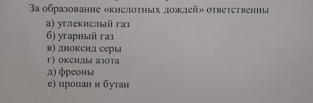 ответ оксиды азота потому, что это основная причина выпадения кислотных дождей. И в результате дождь и снег оказываются подкисленными.