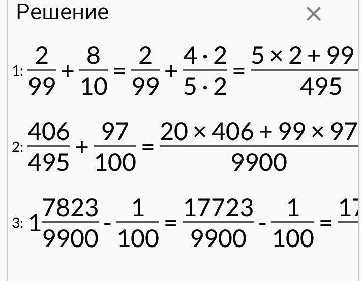 2/99+0,8+0,97/1-0,01=1 1931/2475
