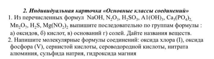 2. ClO2, P2O5, H2SO3, H2S, Al(NO3)3, Na2S, MgOH. Записал все по порядку, надеюсь все понятно.