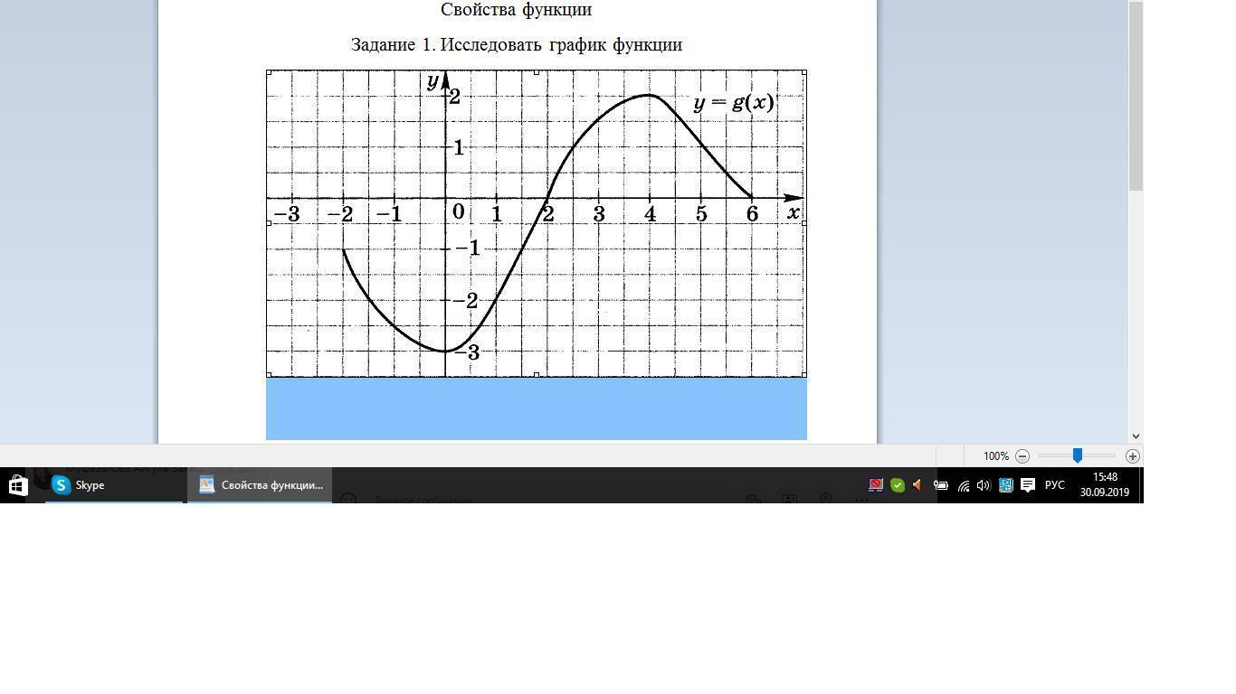 2. На всей области определения функция непрерывна и принимает значения от -3 до 2. То есть областью значений функции является интервал [-3;2], или E[g(x)]=[-3;2].