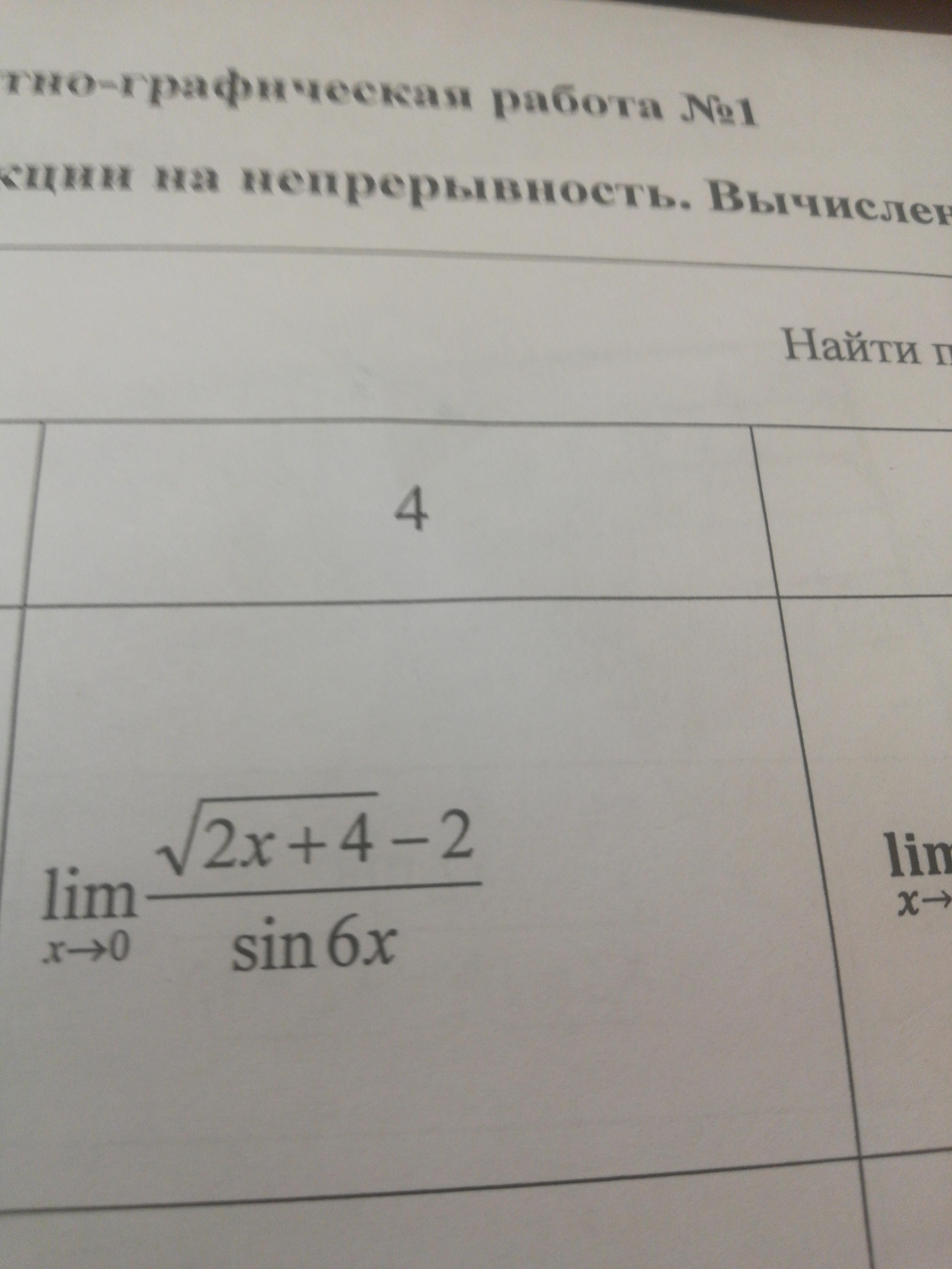 lim(x->0)(2x*3/3*sin6x(sqrt(2x+4)+2)=lim(x->0)1/3*(sqrt(2x+4)+2)=