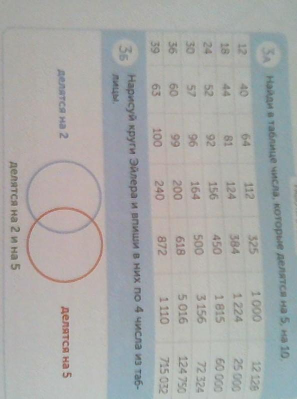 в синий круг пиши: 52, 12 или 112, 164 или все четные какие хочешь, в красном кругу напиши только 325 и 1815, а в середину, где пересекаются красный и синий можно написать: 40,60,100,30, 200, 500 и другие