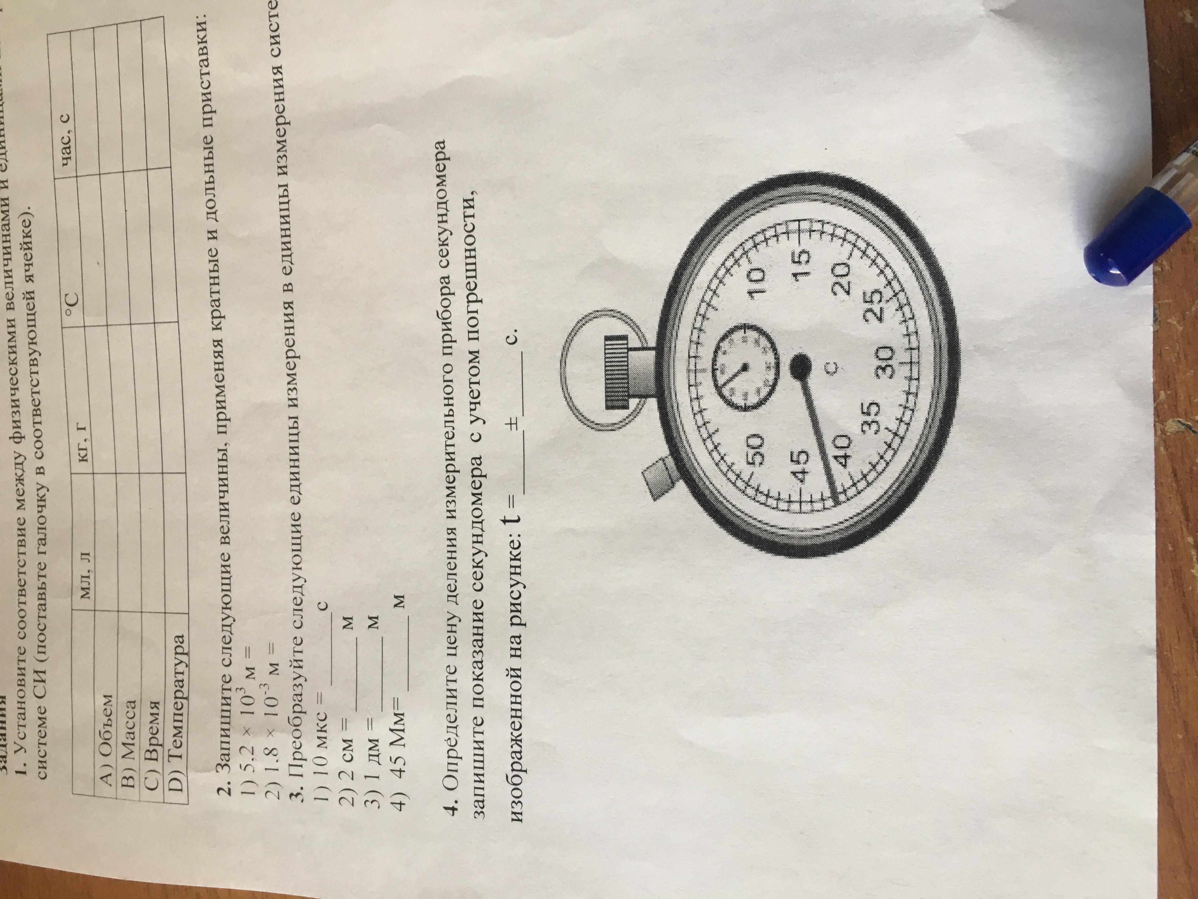 42секунды показаны на рисунке, а после знака ± пишется погрешность, то есть цена деления секундомера, как найти: