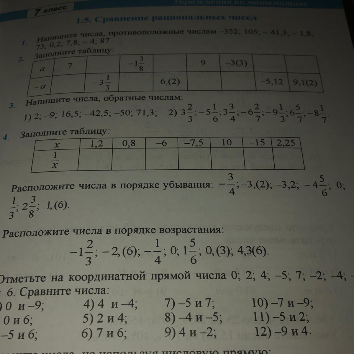 2 3/8 > 1,(6) > 1/3 > 0 > (-3/4) > (-3,2) > (-3,(2)) > (-4 5/6).