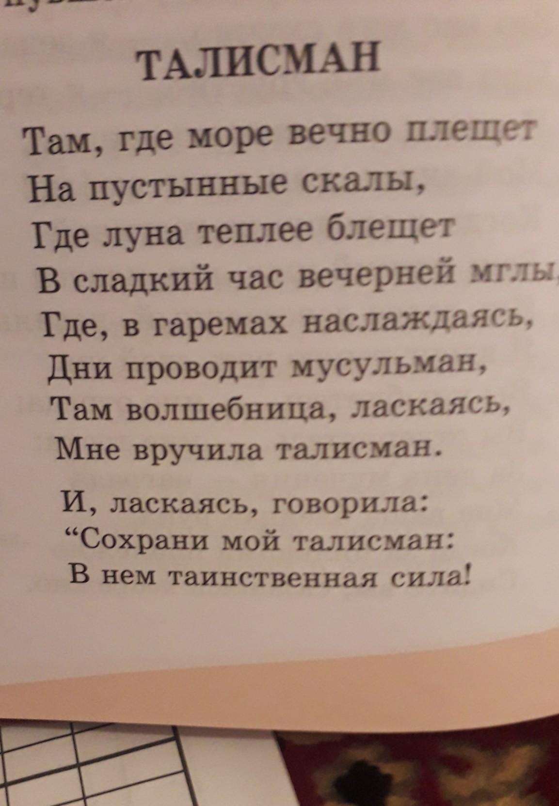 это предложение стихотворение он тебя любви танк от недугов от могиле в бури в грязной ураган головы твоей мой милый Не спасёт мой талисман и богатством Востока он тебя не ударит его Голенков Park он тебе не горит и тебя на луну друга От печали чужих стран в край родной на Север с югом умчит мой талисман но когда коварен Ачи очищают вдруг тебя или уставом мраке ночи поцелует нелюбви милый друг он просто Палин от сердечной новых ран вот измена от забывания сохранить мой талисман