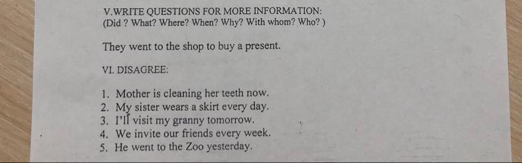 Пятое как я понял надо составить вопросительные вопросы с того предложения.Там грамматика. Я не особо её понимаю.