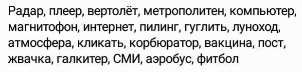 интернет, пилинг, луноход, фитбол, аэробус, 9 по счёту слово