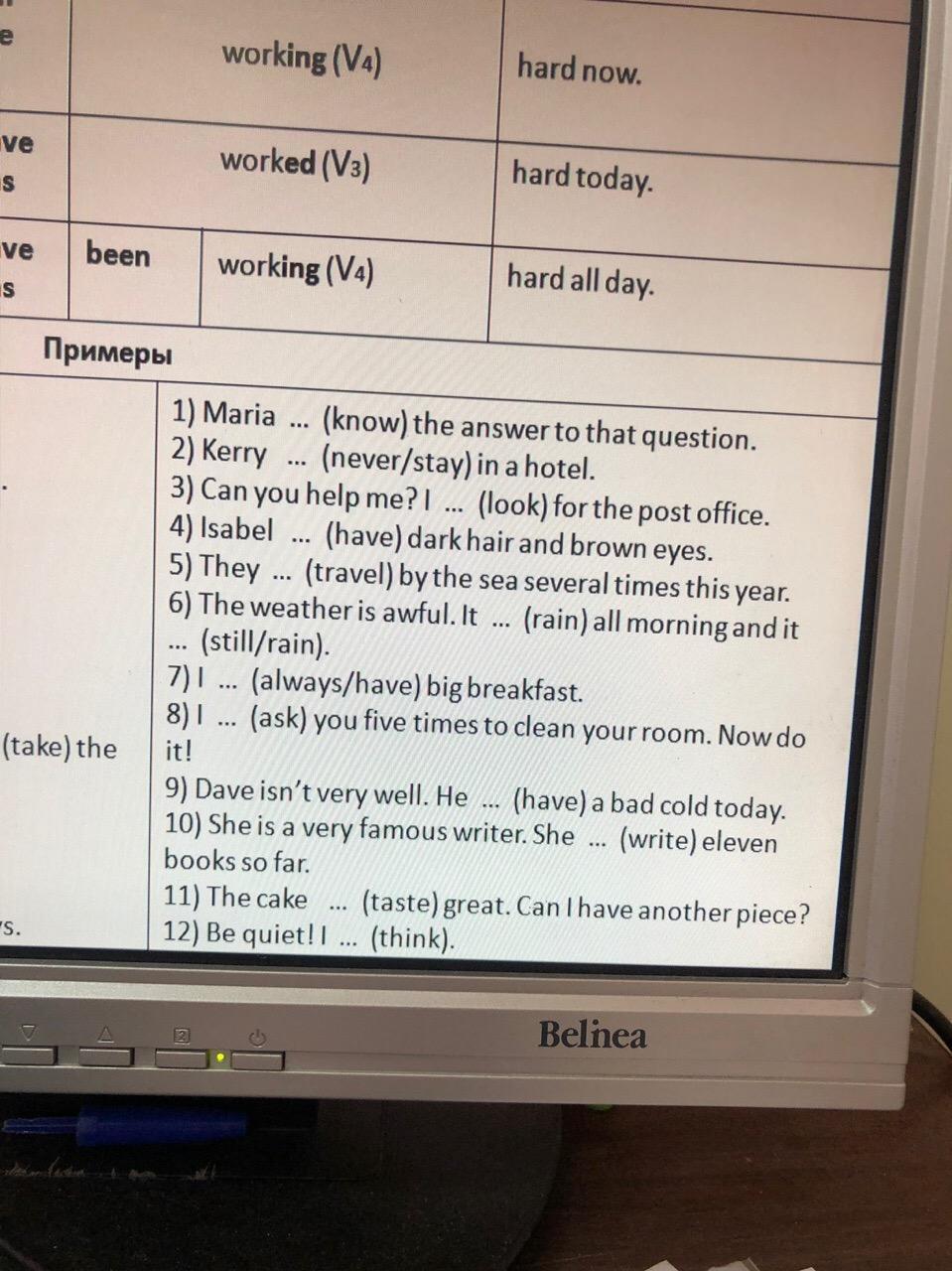 остальные ответы не могу точно сказать там что надо именно ставить Past simple или Present или Continious
