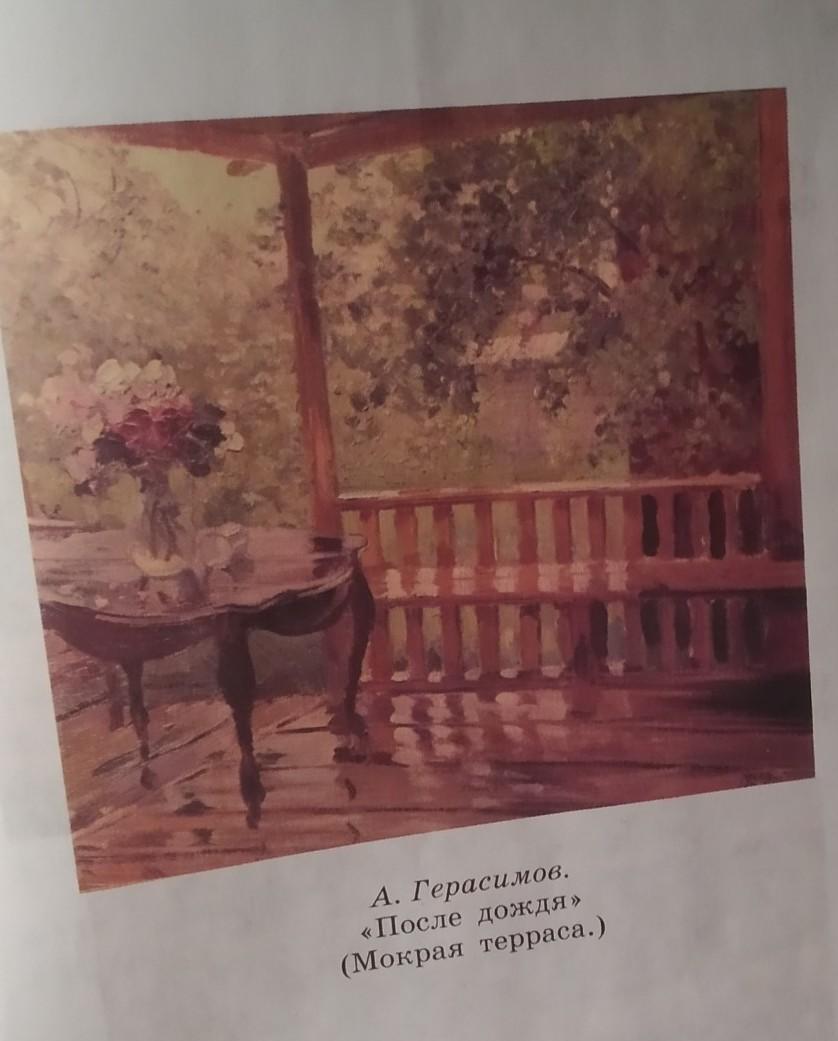 Мне очень понравилась картина А. М. Герасимова «После дождя». Смотришь на нее и чувствуешь, как по классу разносится свежий запах, который бывает после грозы, как воздух тяжел и влажен. И даже кажется, что сейчас начнут падать тяжелые и крупные капли летнего дождя.