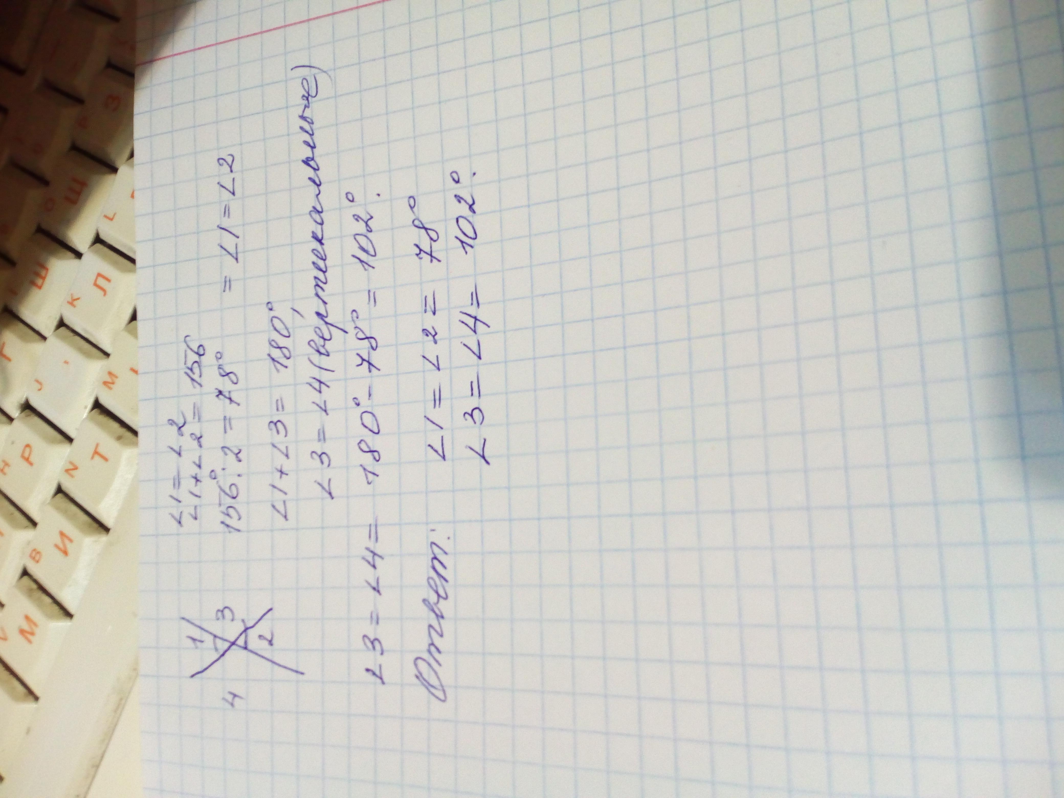 Сумма вертикальных углов, образованных при пересечении двух прямых, равна 156 ͦ. Найдите все образовавшиеся неразвернутые углы.
