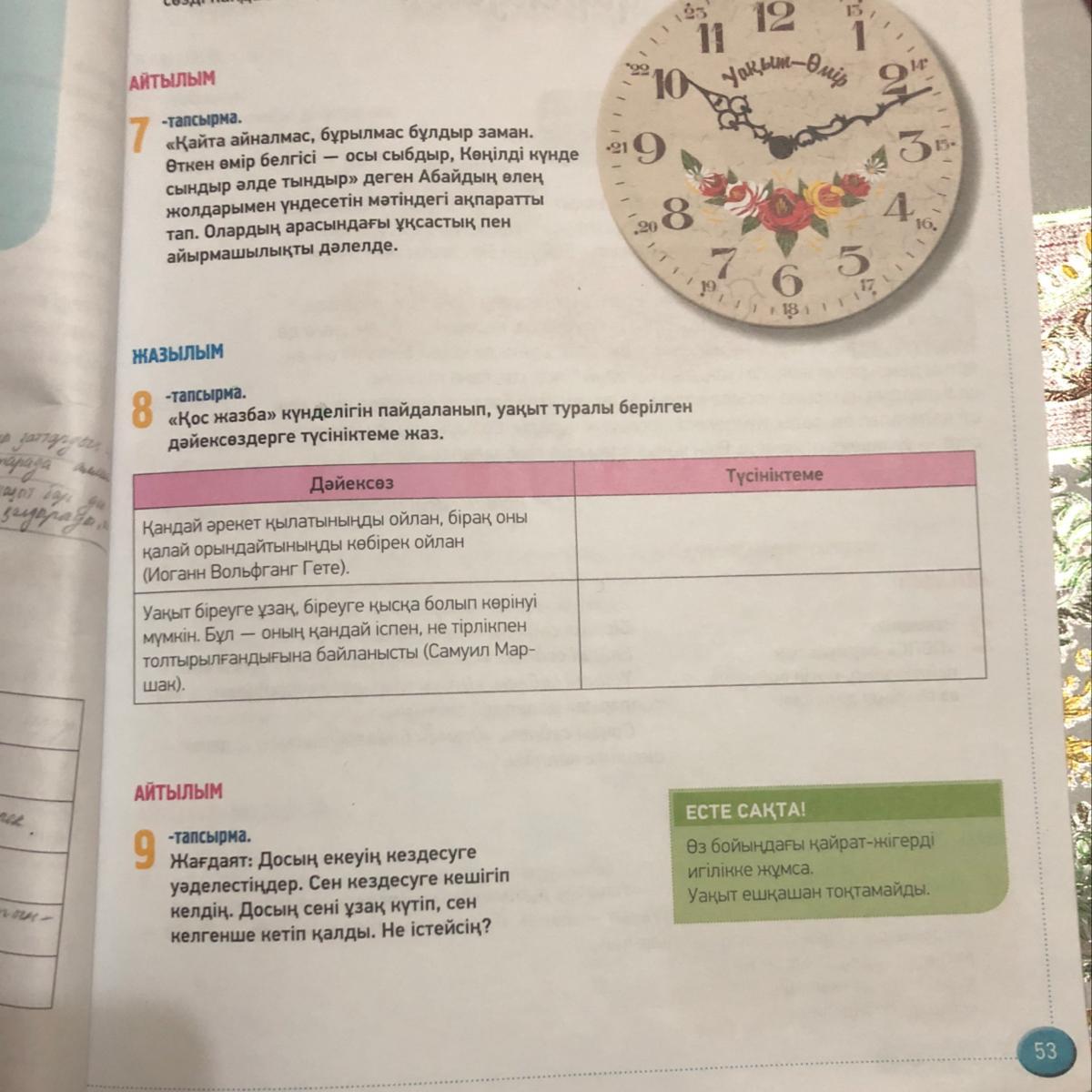 2.Бұл сөздің мағынасы: Уақыт зымырап өтіп жатқан кезең. Біз уқытты тоқтатып қоя алмаймыз. Ия біз сағатты кері шегеріп қоя аламыз. Бірақ шын мәнін де уақытты ешкімде тоқтатып қоя алмайды. Бірақ кейде уақыт тоқтап қалғандай күй кешеміз. Ал киде уақыттың қалай өткенін білмей де қаламыз. Мұдай жағдай бәрімізде де кездеседі. Бұл біздің қандай іспен айналысқанымызға байланысты. Біз өзім қызығушылық танытпайтын іспен айналыссақ бізге уақыт өтпей қалғандай көрінеді. Ал егер өзіміз қызығатын іспен айналыссақ уақыт зымырап өте шығады. Сондықтан да өзімізге ұнайтын іспен шұғылданумыз керек деп ойлаймын. Достар алтын уақытымызды аялай білейік.
