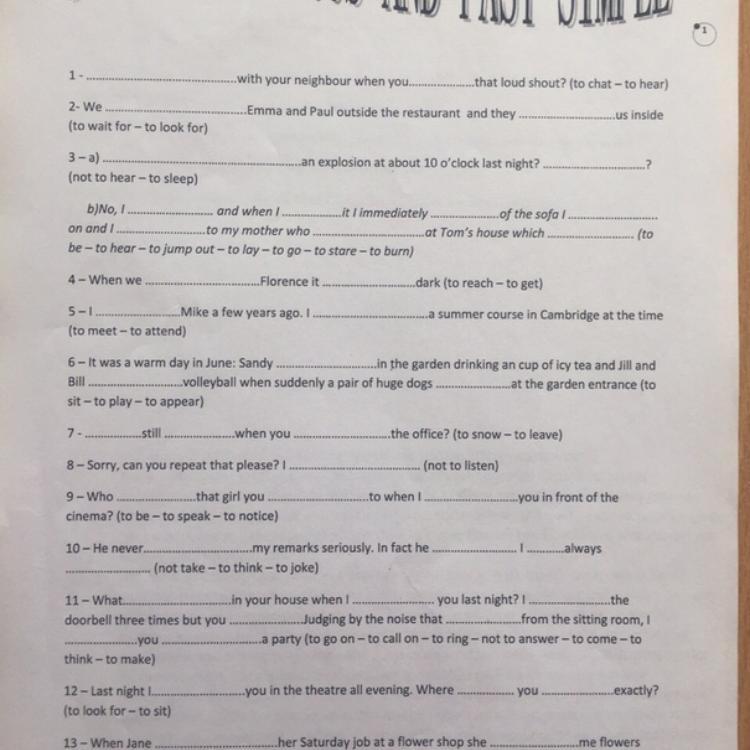 11. was going on, was calling on, rang, didn`t answer, was coming, thought, was making