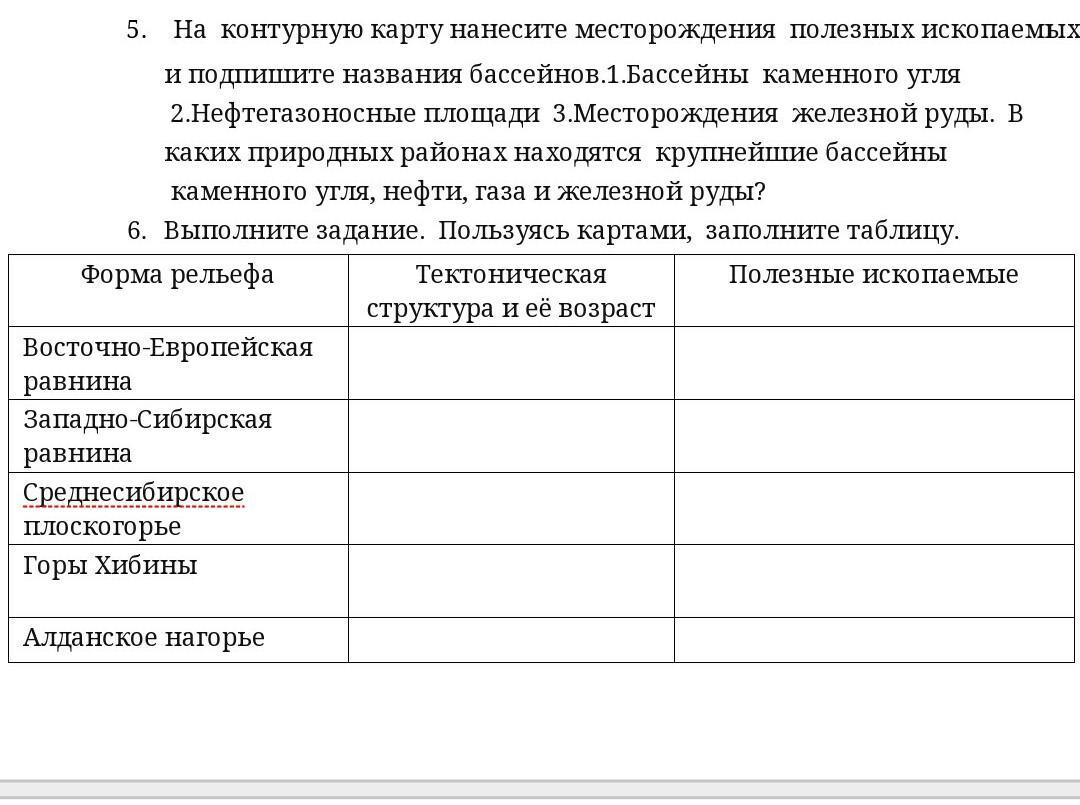 В-Ер - русская платформа; свыше 1 млрд лет; железная руда, уголь, нефть, горюцие сланцы